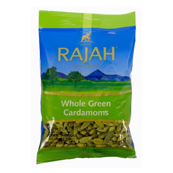 Rajah Whole Green Cardamom, offered by the brand Rajah, consists of whole green cardamom pods—a highly aromatic and flavorful spice that’s widely used in various cuisines and traditional remedies.